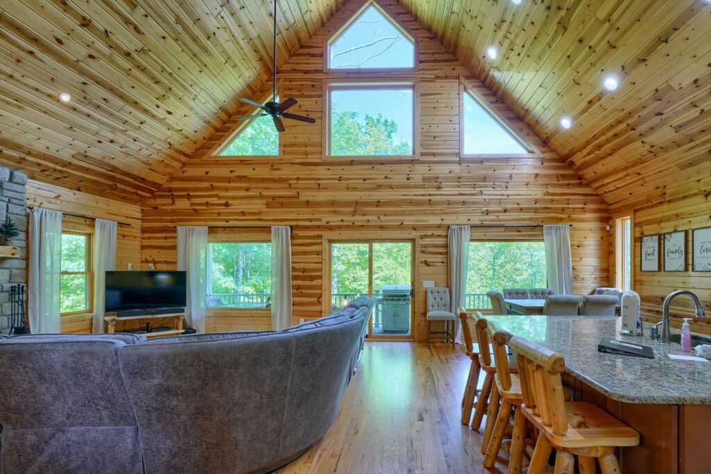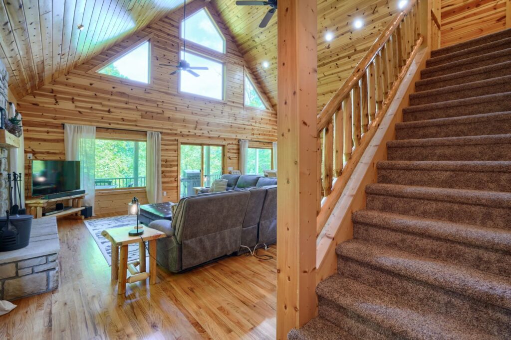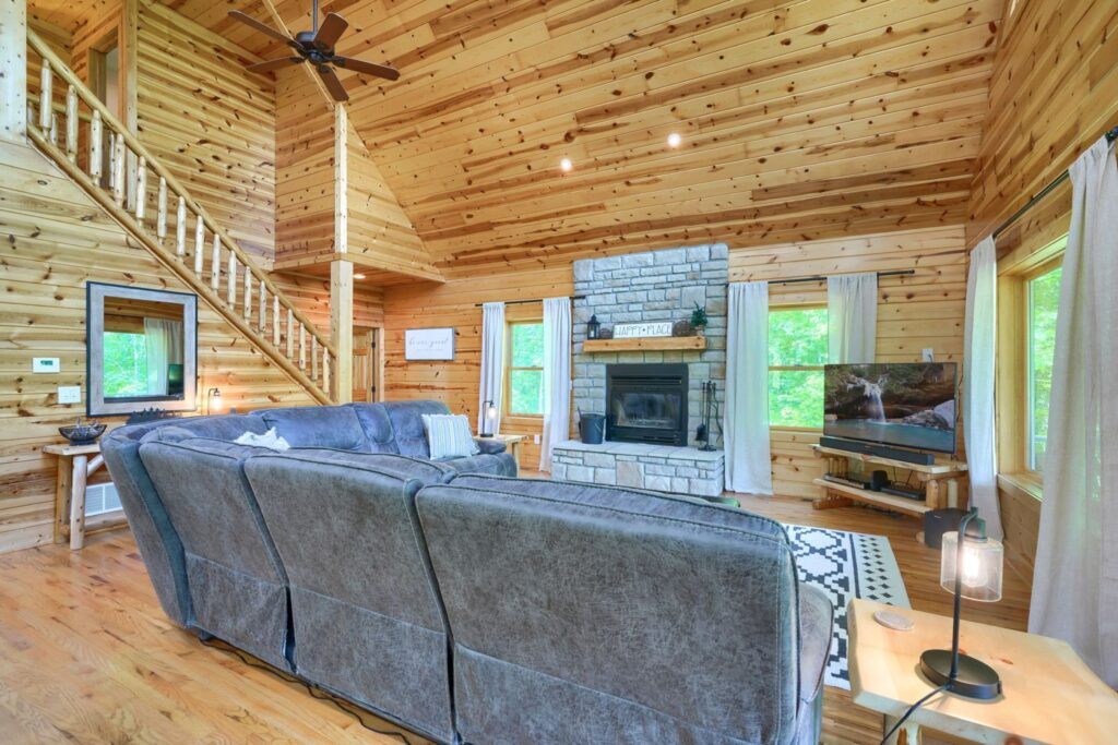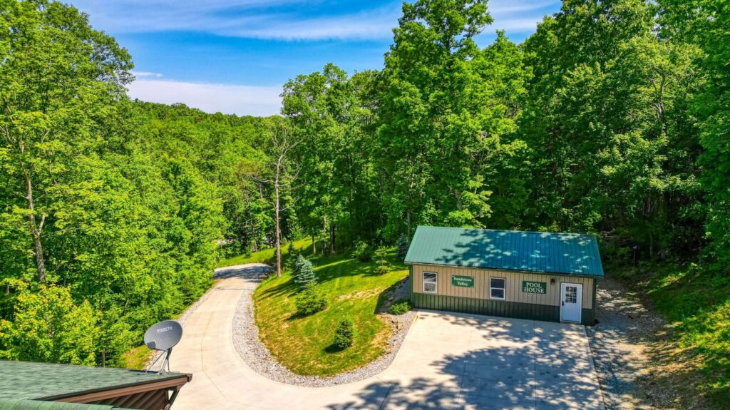 Step inside Sandstone Valley Estate! This oversized lodge cabin has a year round indoor pool! This magnificent home sit on 11 wooded acres just minutes from Old Man’s Cave. This pristine property offers an incredible location for your next family vacation or couples retreat! With 3 levels, 6 bedrooms, and 3.5 baths, there is expansive space for your large group! Imagine nights out on the deck, relaxing in the hot tub and the peaceful scenery of Hocking Hills surrounding you.