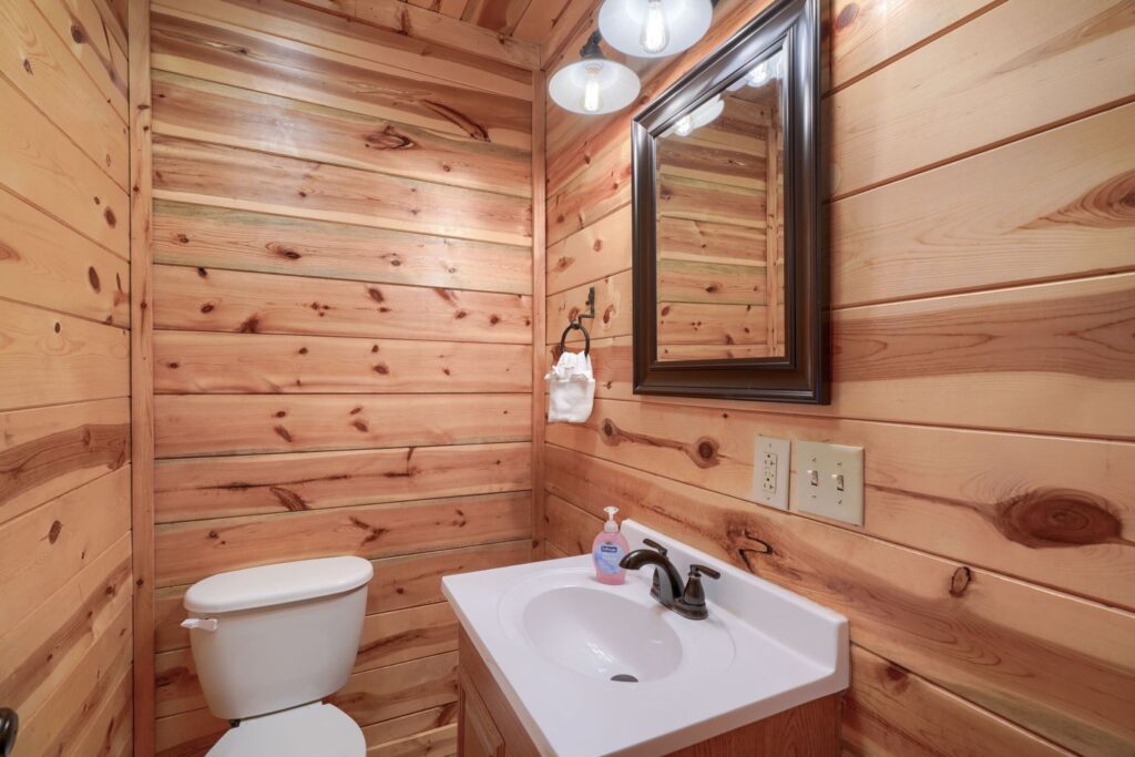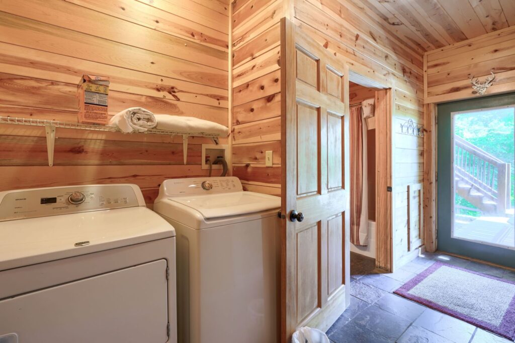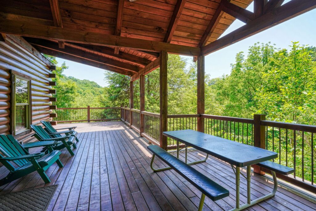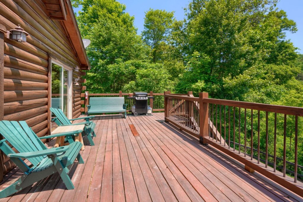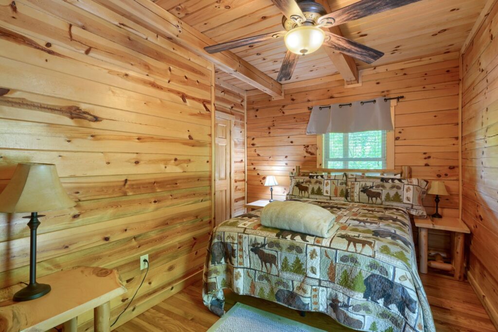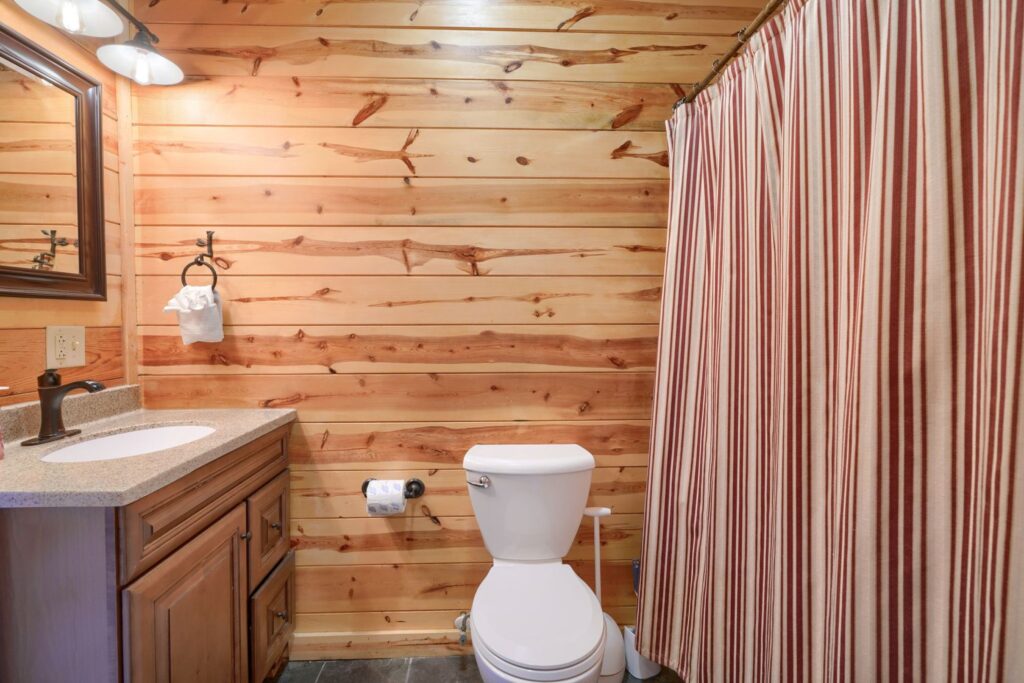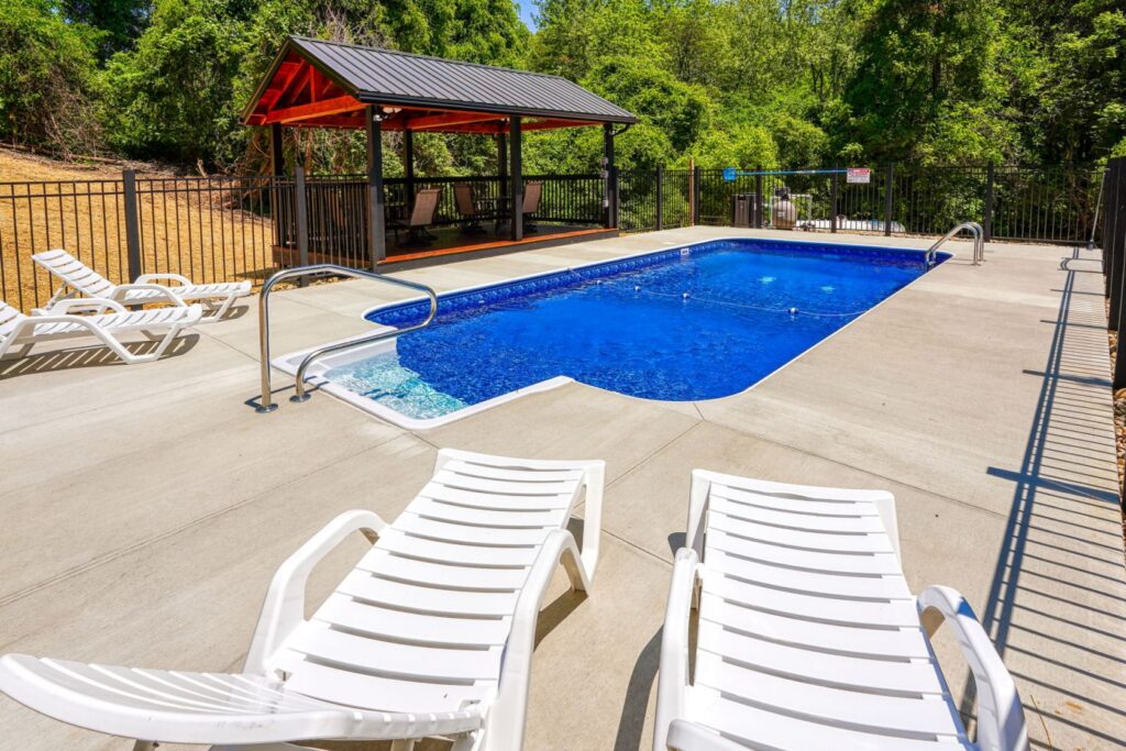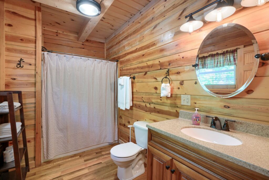 Seasonal in-ground pool, open Memorial Day- October 1st (weather permitting) This remodeled 5 br lodge is on 17.5 private acres with an onsite rock outcropping and hiking trail. This luxurious log home sits atop a hill with expansive views valleys and is just minutes from Rock House. Recently remodeled and designed! It offers luxury, privacy, and the perfect location for your next family vacation or long-awaited friends’ trip! Must be 25 years or older to rent.