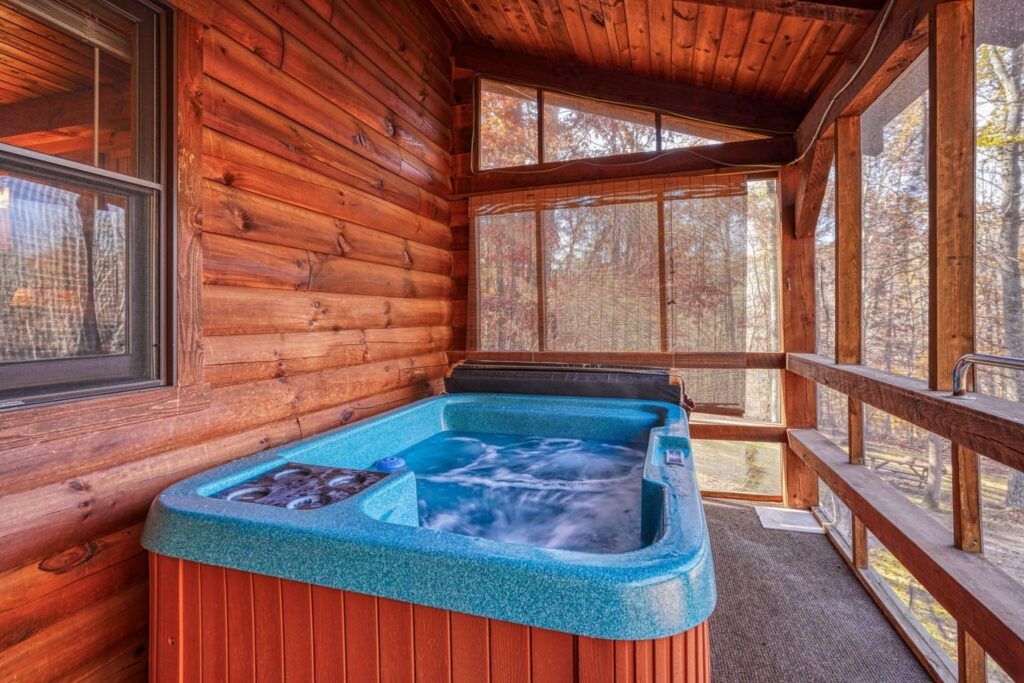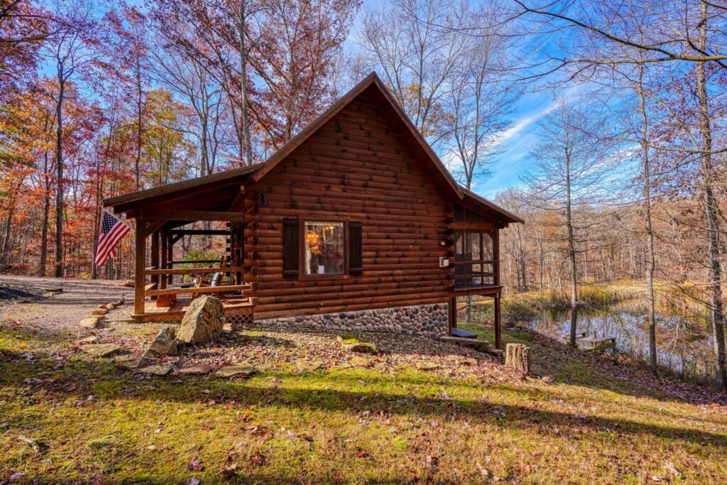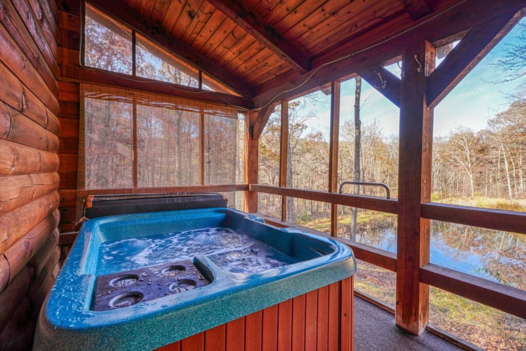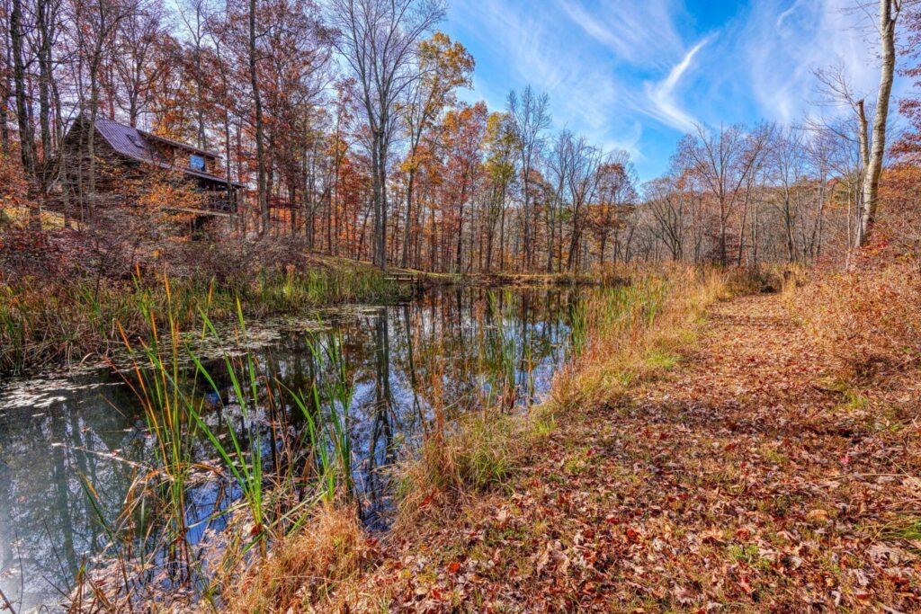 Beautiful 2 bedroom cabin with pond, screened in porch, and hot tub! This pet-friendly retreat is conveniently located within the Hocking Hills and provides the very best atmosphere for your next getaway! Water’s Edge is located on the same road as Hideaway Cabin, Tranquility Ridge, Secluded Cabin, Coal Mine Ridge and Sterling Lodge! It works great as a stand-alone vacation destination, or part of a large group rental!